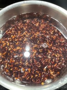 Laver le riz et le faire cuire dans une grande casserole d’eau pendant 30 minutes.