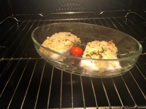 J’ai choisi le cabillaud qui se tient bien à la cuisson, je l’ai recouvert d’une croute d’amandes et déposé sur un lit de quinoa et légumes du soleil.