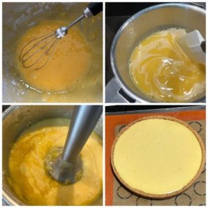 Quand le mélange commence à s’épaissir, retirer du feu, ajouter le beurre et passer au mixeur plongeant afin d’homogénéiser parfaitement la crème.