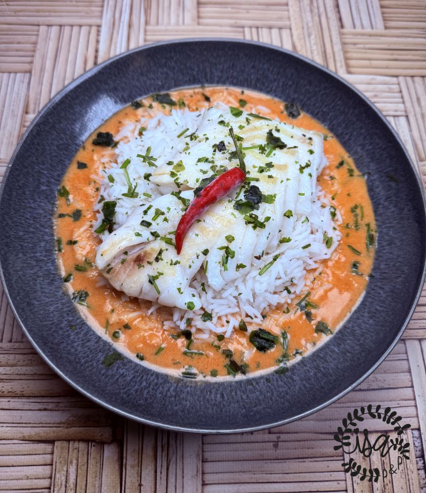 Voici un plat facile et rapide à préparer, un pavé de cabillaud grillé déposé sur un lit de riz Thaï et entouré d'un bouillon au lait de coco au curry…